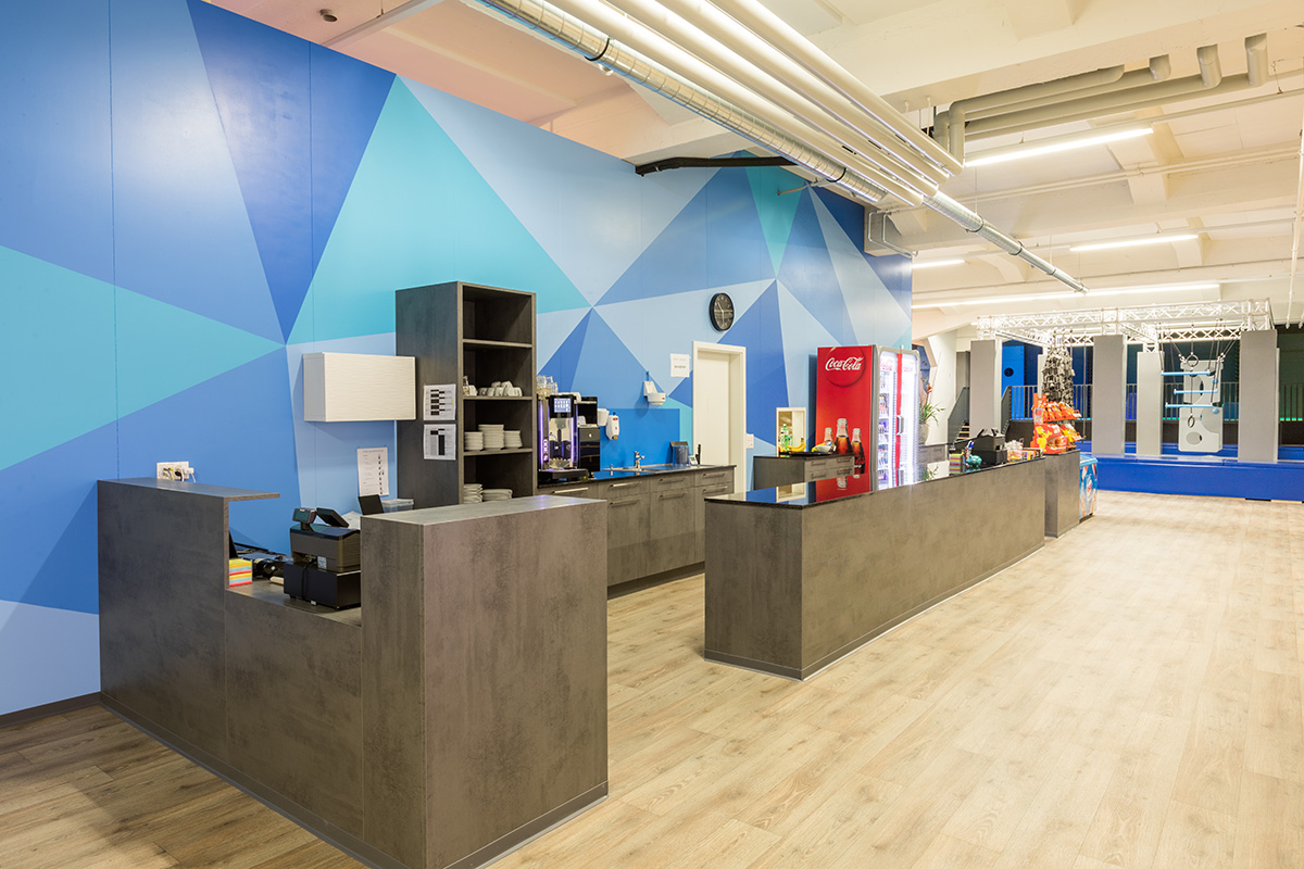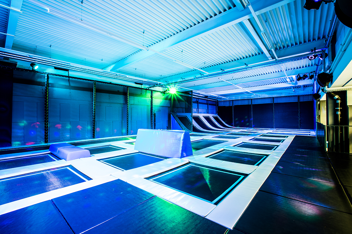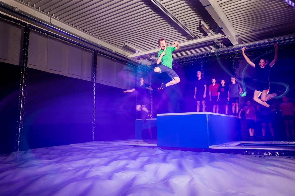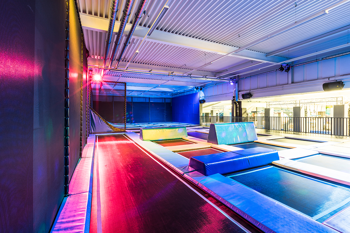 350m² Trampolinfelder mit Jump-Bag, 23 Einzelfeldern, Schräg-Trampoline und Tumbling-Lane