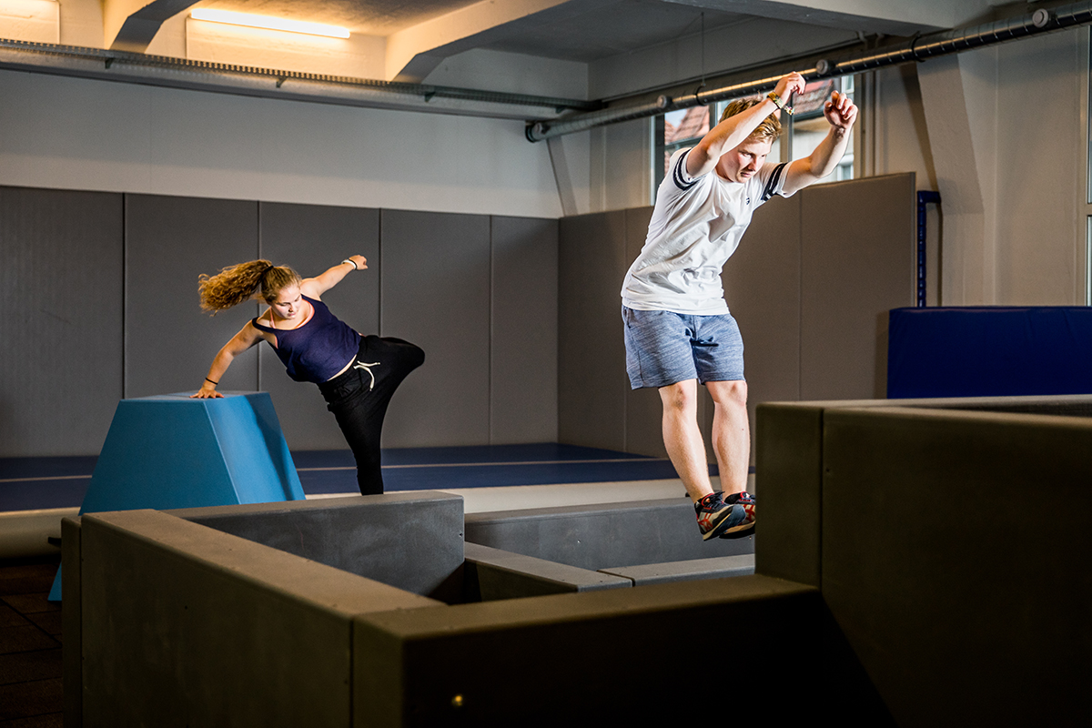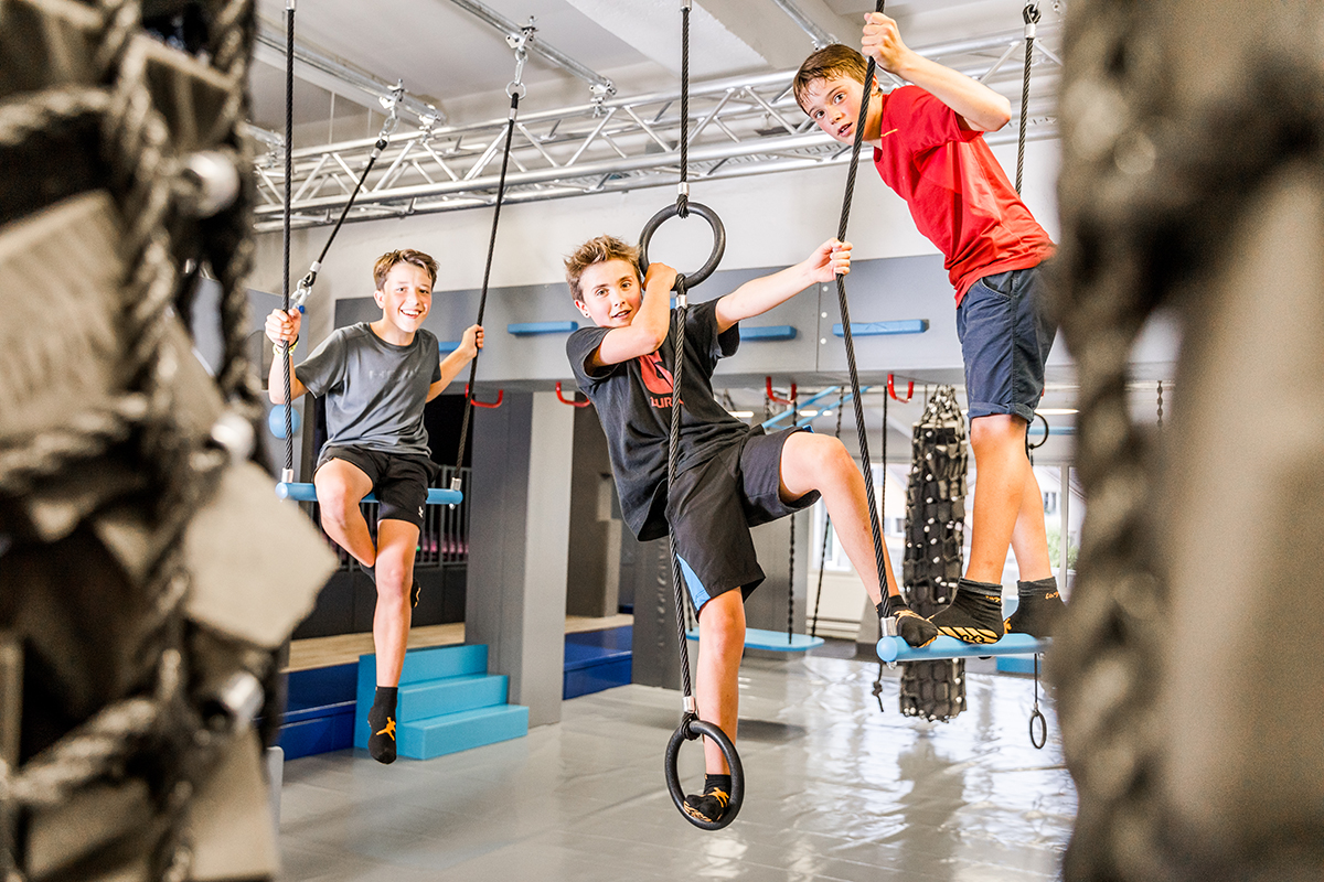 - Im Parkour-Bereich und beim Ninja-Course dürfen saubere Hallenturnschuhe getragen werde.